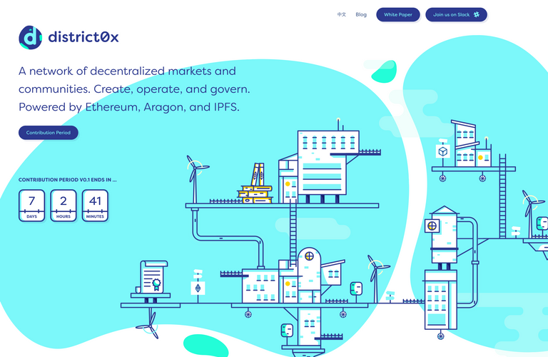 DIstrict0x 네트워크는 이더리움과 아라곤, IPFS 에 의해 동작하는 탈 중앙화된 커뮤니티, 마켓플레이스입니다. 유저들은 DIstrict0x 네트워크 위에 여러 제품들을 올리고 거래할 수 있으며 , 평판도 관리됩니다. DNT 토큰은 District 라고 불리는 하나의 시장이 생성될 때마다 사용됩니다.