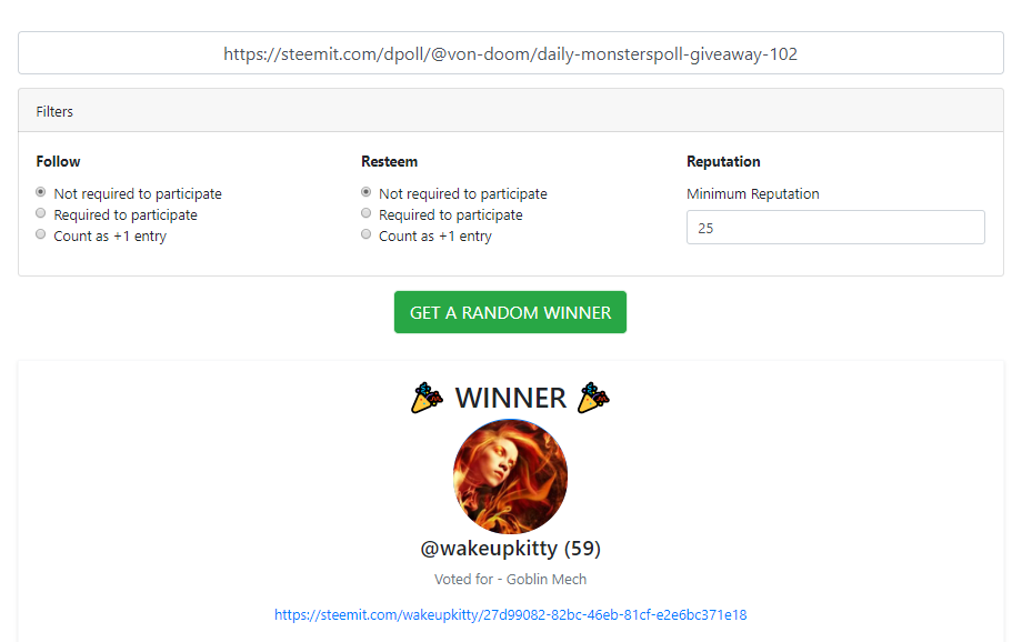 The winner will be chosen from among the users who participated in the poll, will be chosen using Steem Random Winner Picker tool.