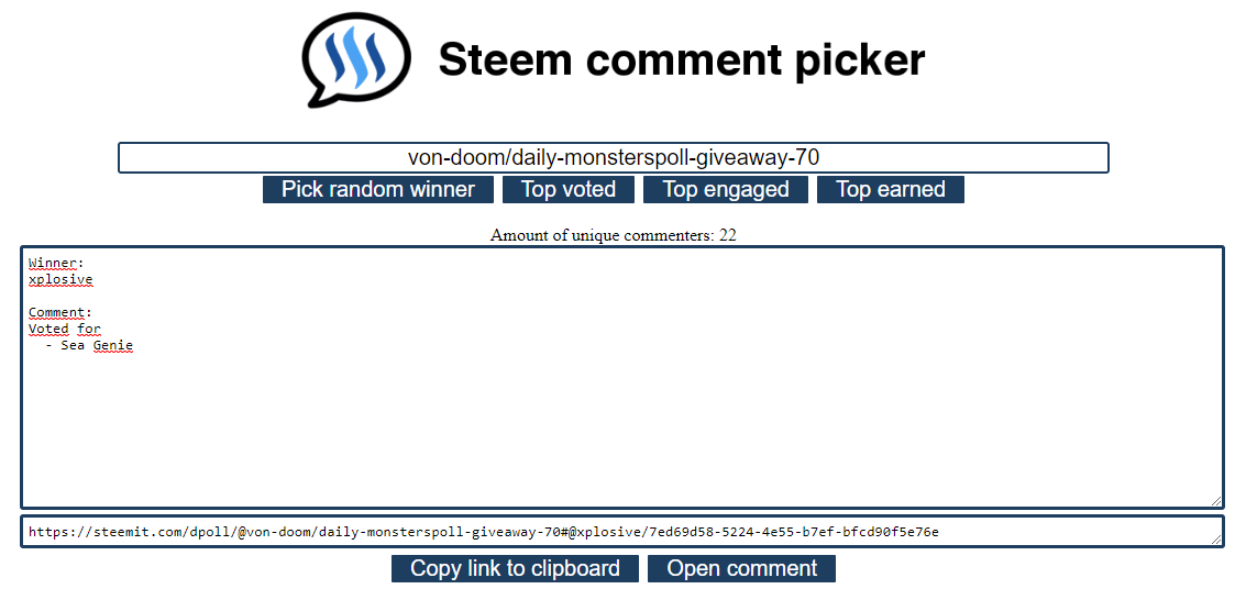 The winner will be chosen from among the users who participated in the poll, will be chosen using Steem comment picker tool.