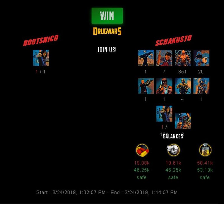 Check my latest fight ! rootsnico vs schakustoschakusto (31)in #drugwars-fight • 7 years ago #gaming #fight #dw