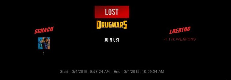 Congratulations @loebtog ! Your fight received an upvote of 1% from the King Dealer as incentive for your activity and as a gratitude for your support to the game. Want to know more about DrugWars.io?