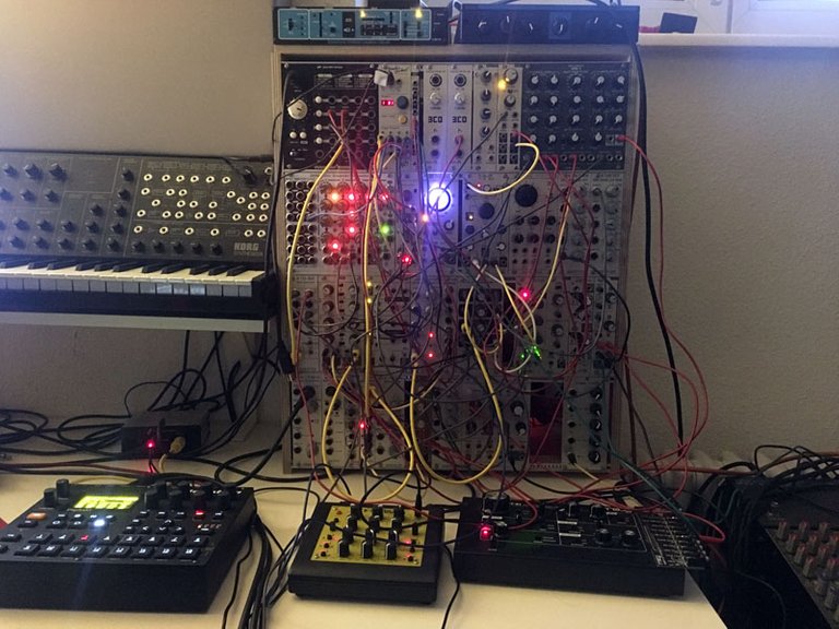 For this tune I used the Elektron Digitakt for the beat and as master clock, MFB Nanozwerg, Moog Werkstatt and the modular system. Everything was recorded live thru the Mackie CR 1604. Effects are coming from the Rockman Chorus/Delay and the Eventide H9.