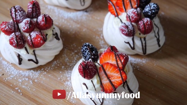 Crisp meringue "nests" filled with delicious whipped cream and topped with fresh berries and chocolate makes perfect dessert. They are also really easy to make and most of the elements can be made ahead of time, which means that when the time rolls around when everyone is ready for an dessert, all you need to do is whip up some cream and spoon the filling into the nests. Add different berries, melted chocolate and you're done!