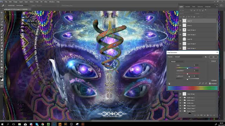 I created this image in about 5.5 hours, almost all in Photoshop. The elements I have used are from my own library that I have created and amassed over a period of 7 years with all sorts of software like PS, Illustrator, Cinema 4D, Zbrush, Incendia, Mandelbulb 3D, Ultra Fractal, Painter, Daz3D. Some textures and photography elements were purchased from Shutterstock.