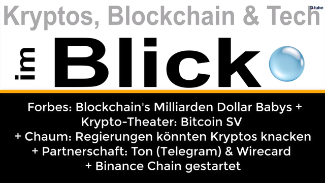 Wirtschaftsmagazin Forbes: Blockchain’s Billion Dollar Babies https://tinyurl.com/y5j6ajmw
