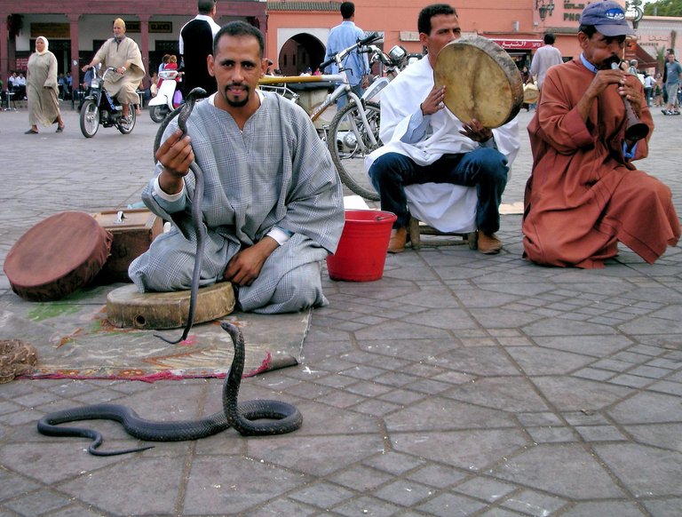 In Marrakech, the Place Jemaa-El-Fna owes some of its fame to the traditional snake charmers. The imposture of their talent would be only magic if it did not induce the mistreatment of cobras, vipers bumping, snakes of Montpellier and others, for the purpose of the perpetration of a doubtful medieval spectacle. Most of these beautiful species are either threatened with extinction in North Africa or are in alarming decline. This contributes to the appalling general depletion of Morocco's ecosystems.