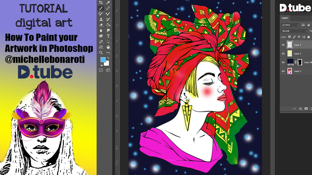 in this video you can watch all the process of coloring , tutorial of how to paint your artwork in photoshop .