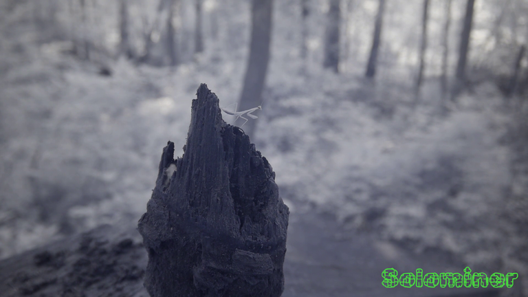 I first use my ultraviolet passthrough filter for about half the video, and then change it out for my 720nm infrared passthrough filter. As I walk I find trees to pan up and see their canopy and the ultraviolet and infrared sky peaking through the bare spots.