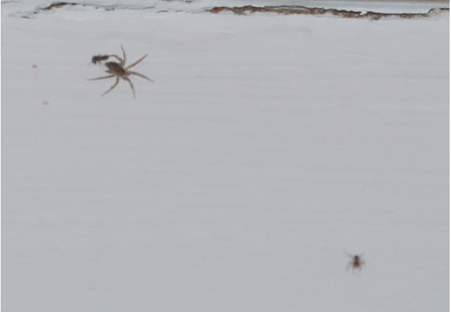 This is where a brave ant attacks the spider and kicks him off the wall!
