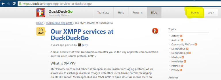2. While you’re waiting for Jitsi to download, you’ll need to set-up an XMPP server. Head over to DuckDuckGo and sign-up. Note: make sure to remember your email ([email protected]) and password as you will need that to log-in.