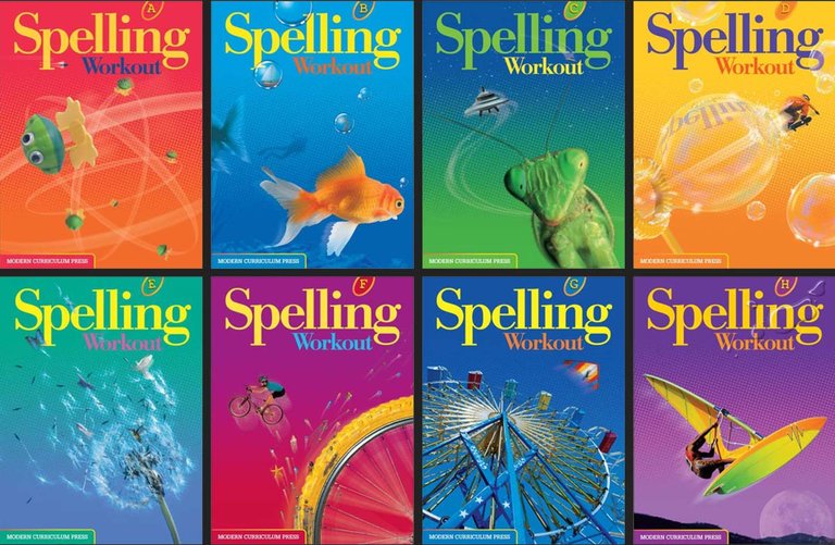 Spelling Workout Series, Modern Curriculum Press. This is a nice workbook series that doesn’t require much preparation on your part and largely independently.