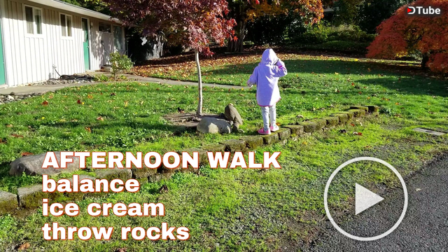 She sings a little song down our street, "Going for a walk. Going for a walk. Going for a walk." I deeply love that she sings about the simple things happening, like a personal musical.