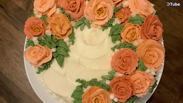 I myself learned baking cakes through video tutorial so I could totally relate. By the way, the designs on your cake were spot on. The peaches and cream color combined with green really suits the cake. Loved it.