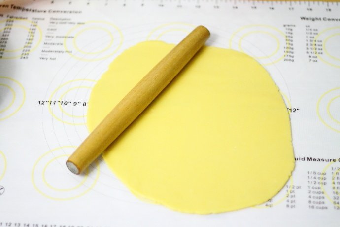 Prepare food:150g butter, flour 380g, 2 egg, sugar 100g, salt 2g,edible pigment 150g.