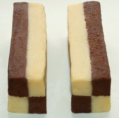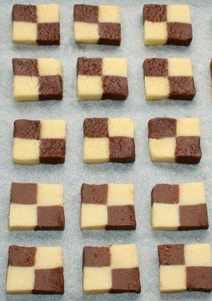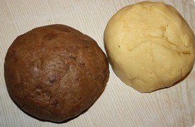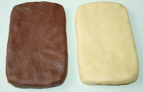 5. Bright and dark roll the dough into equal size beds (14h9 cm.)