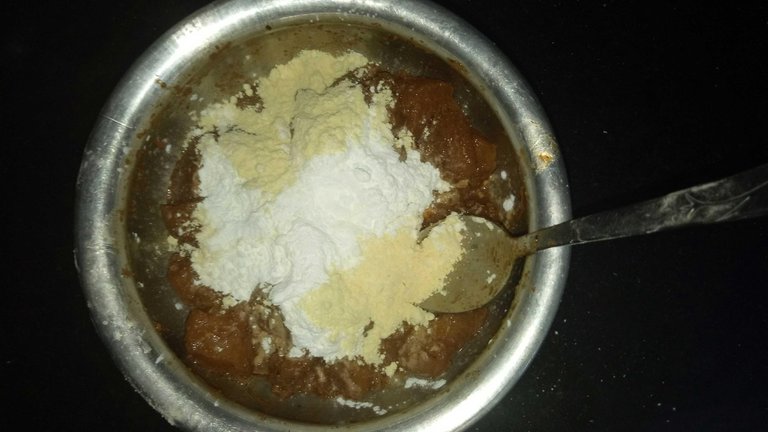 Now add corn starch and gram flour again mix it well until you get a result like this.