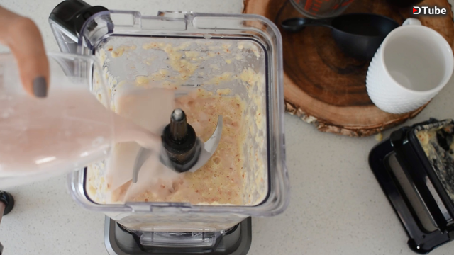 Blend pineapple chunks, the water and flesh of one young thai coconut (or 1/2 cup coconut water), and raw almonds until smooth and creamy