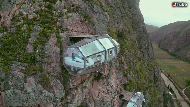 For about $1,000 per night, you can sleep in one of these suspended “transparent luxury capsules.” All you have to do is climb the 400 feet up to get into one. Guests climb by via ferrata, a ladder-like framework made of iron, or they can hike an “intrepid trail through ziplines.”