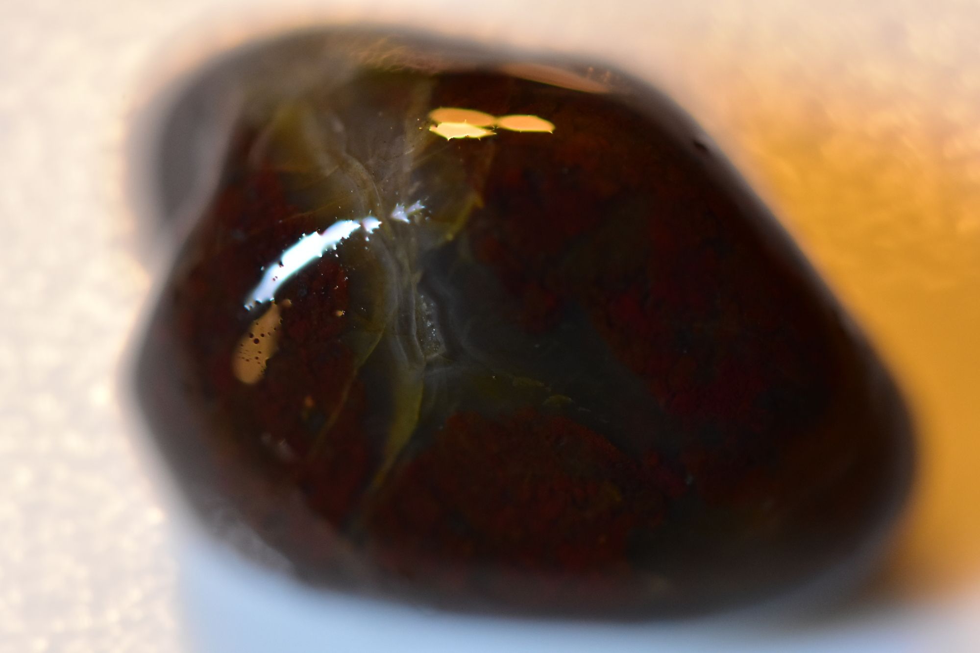 There isn't much detail in the glow for this one, but that's the thing -- it's not supposed to! I've never seen a jasper like this. That's what makes it so unique!