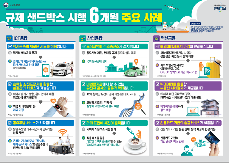 규제샌드박스제도를 시행한 이후 현재까지 5회에 걸쳐 총 42건의 서비스를 지정하였습니다. 그동안 지정받은 서비스들의 발표자료를 글의 마지막에 모았습니다. 한번 읽어보시면 어떨까요?