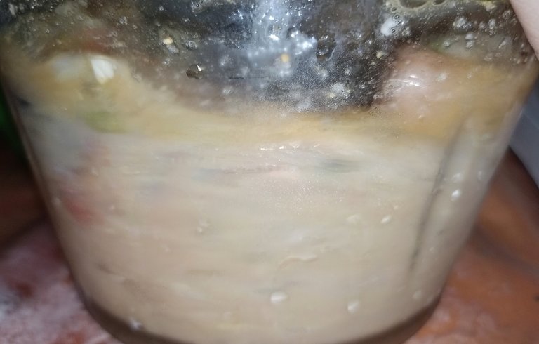 - Put the chicken, shrimp, garlic, sautéed spring onion, oyster sauce, pepper, salt, garlic powder, chicken bouillon powder, ice cubes, and egg white into a chopper