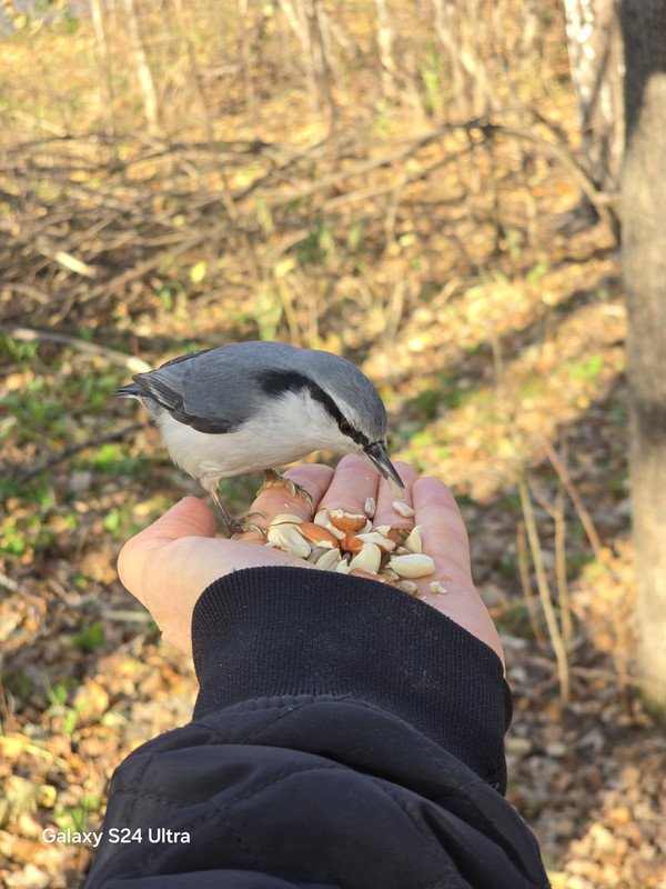 You can meet these guys almost anywhere, in any kind of forest. But it is easiest to do this in city parks. There these birds are tame and are happy to eat from people's hands, and even beg for food.