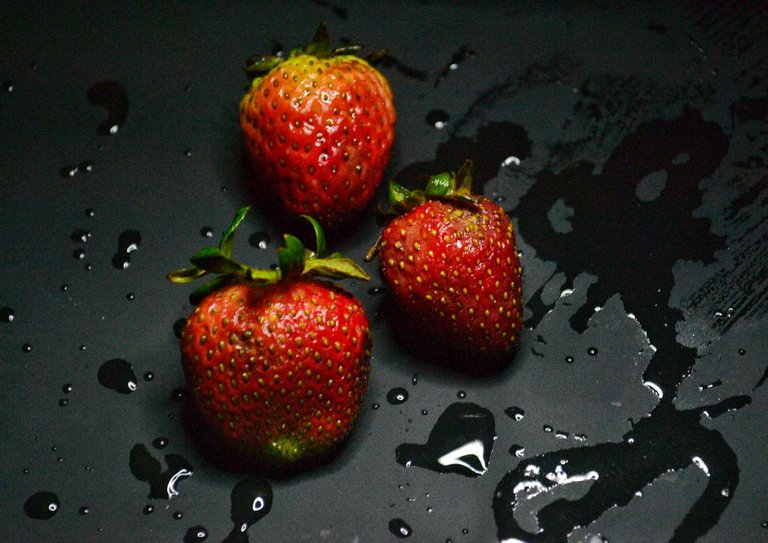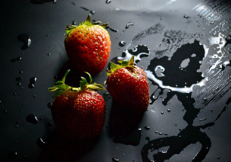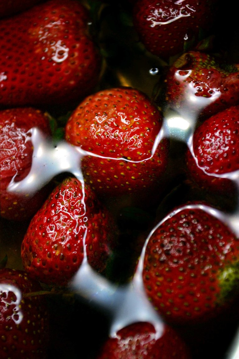 This time, I'd like to share with you some photos I shoot about 15 days ago. I tried to make an experiment by using the low key technique with strawberries, and water. I hope you like the result.