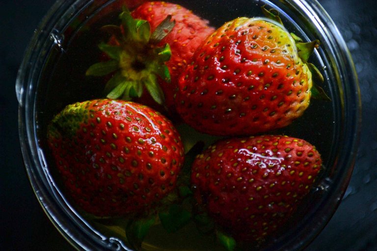 Esta vez, me gustaría compartir con ustedes algunas fotos que tomé hace 15 días. Intenté hacer un experimento usando la técnica de clave baja con fresas y agua. Espero que les guste el resultado.