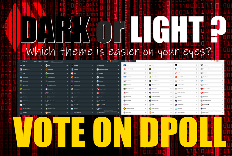 Which theme do you prefer?darkflame (69)in dPoll • 6 years ago Which theme do you prefer? I like it with the Dark theme. Which do you prefer? Dark Light Answer the question at dpoll.xyz. #dpoll #peakd #poll #hive