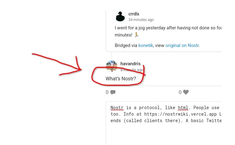 And there it is. I just posted a note on #Nostr using a bridge I made (it auto-bridges from Nostr to the Hive blockchain). Then, over on Hive, someone asked the magic question. This is how we #grownostr, by crossing off of Nostr Island onto other islands to people who have never heard of such a place.