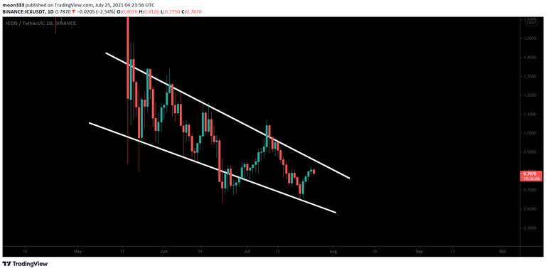 Previously we have seen that the price action of ICON was breaking out the resistance of a down channel . But it was failed to break out and moved back into the channel again. This time the support of the channel is lifted up. Therefore, the channel has been transformed to a falling wedge pattern and now the price action is again moving up to make another attempt to break out the resistance of this falling wedge pattern.