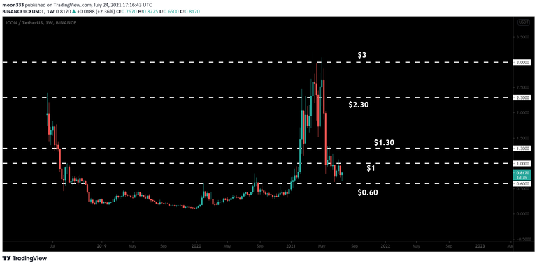 The price action of the ICX coin is moving between the $0.60 support and $1 resistance levels. On the weekly time frame chart, we have 3 more resistance levels working as major resistances after $1. These resistance levels will be $1.30, $2.30 and $3 is the final resistance as per the Binance exchange.