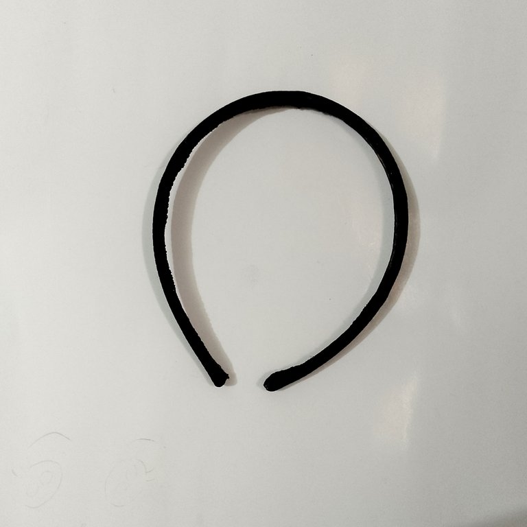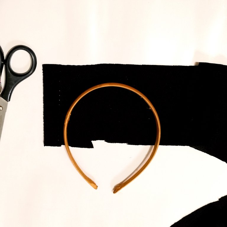 Recorte una tira larga de color negro para forrar el cintillo. La tira mide aproximadamente 3 cm de ancho por el largo del cintillo.