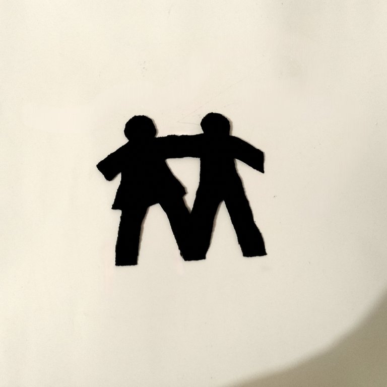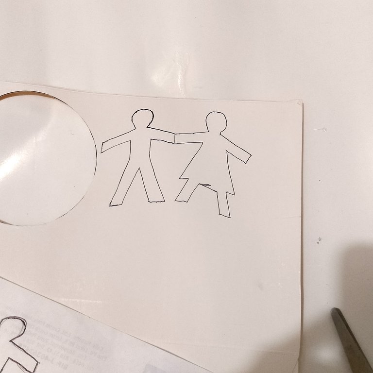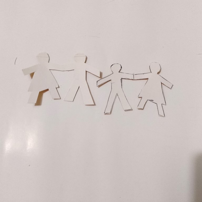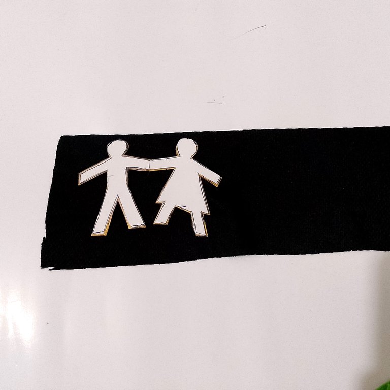 En la cartulina realice la silueta de dos niños tomados de la mano, los recorte y forre con la tela negra, tal como hice con la figura de la tierra.