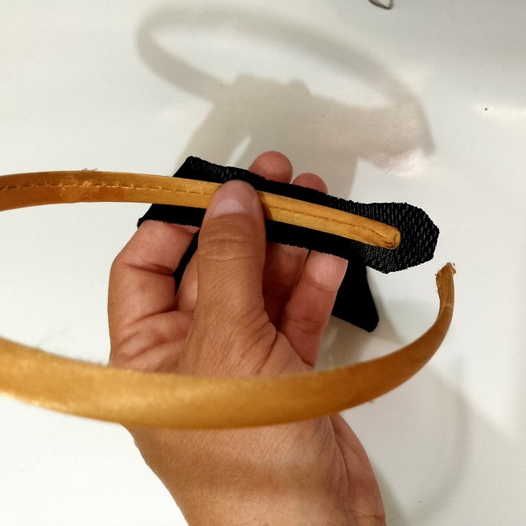 Now I just had to assemble it, with the help of the silicone I glued the soil to the headband, just where I left the excess fabric, leaving it as shown in the image.