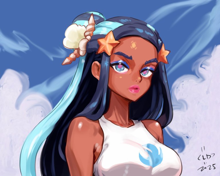 now i start coloring and rendering the hair consider adding the accessories of an ocean healer right?