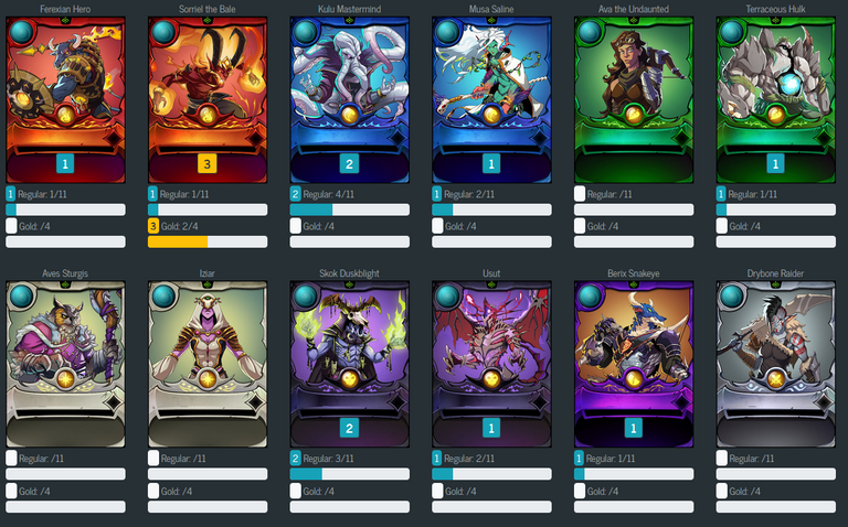 I like how splintercards.com has a tool for users to review their progress of reaching a max level set of either Soul Bound or Gladius collection. For me the Soul Bound collection is coming in steadily.
