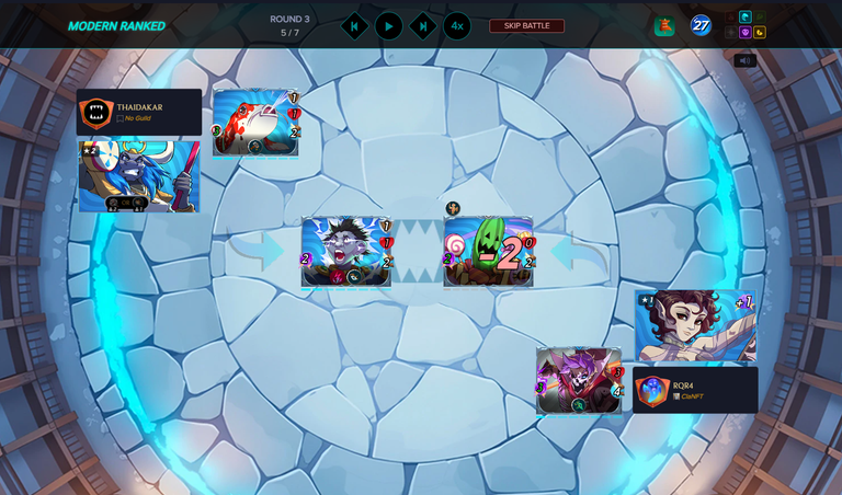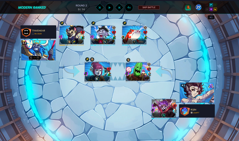But Splinterlands always finds a way to surprise you. My opponent was under the Electrified effect, and as round 2 began, all enemy monsters took 1 point of mass damage. Slowly but surely, their HP started to chip away.