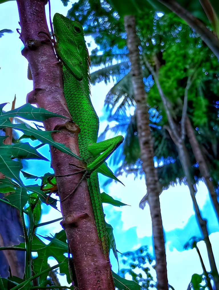 This afternoon, while I was playing in a small hut near my grandfather's fish pond, I accidentally came across a chameleon climbing a cassava tree stump. Despite my slight apprehension, I took the initiative to photograph it. After successfully capturing the image, I edited it in the PicSay Art app with a black and white effect because I wanted to submit it to the black and white photofeed contest round 149.