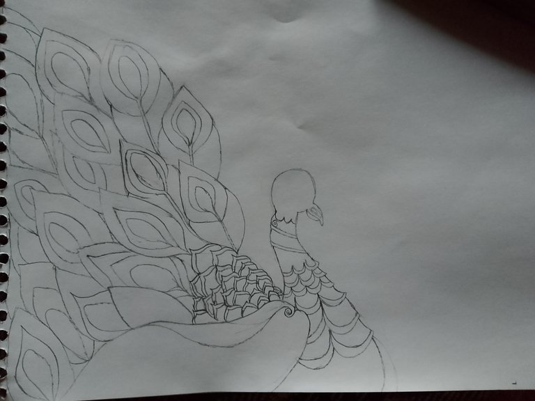 In this step,we will start to draw the wings of the peacock.