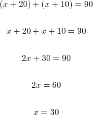 This makes the two angles 50 degrees and 40 degrees after substituting the value of 30 degrees for x.