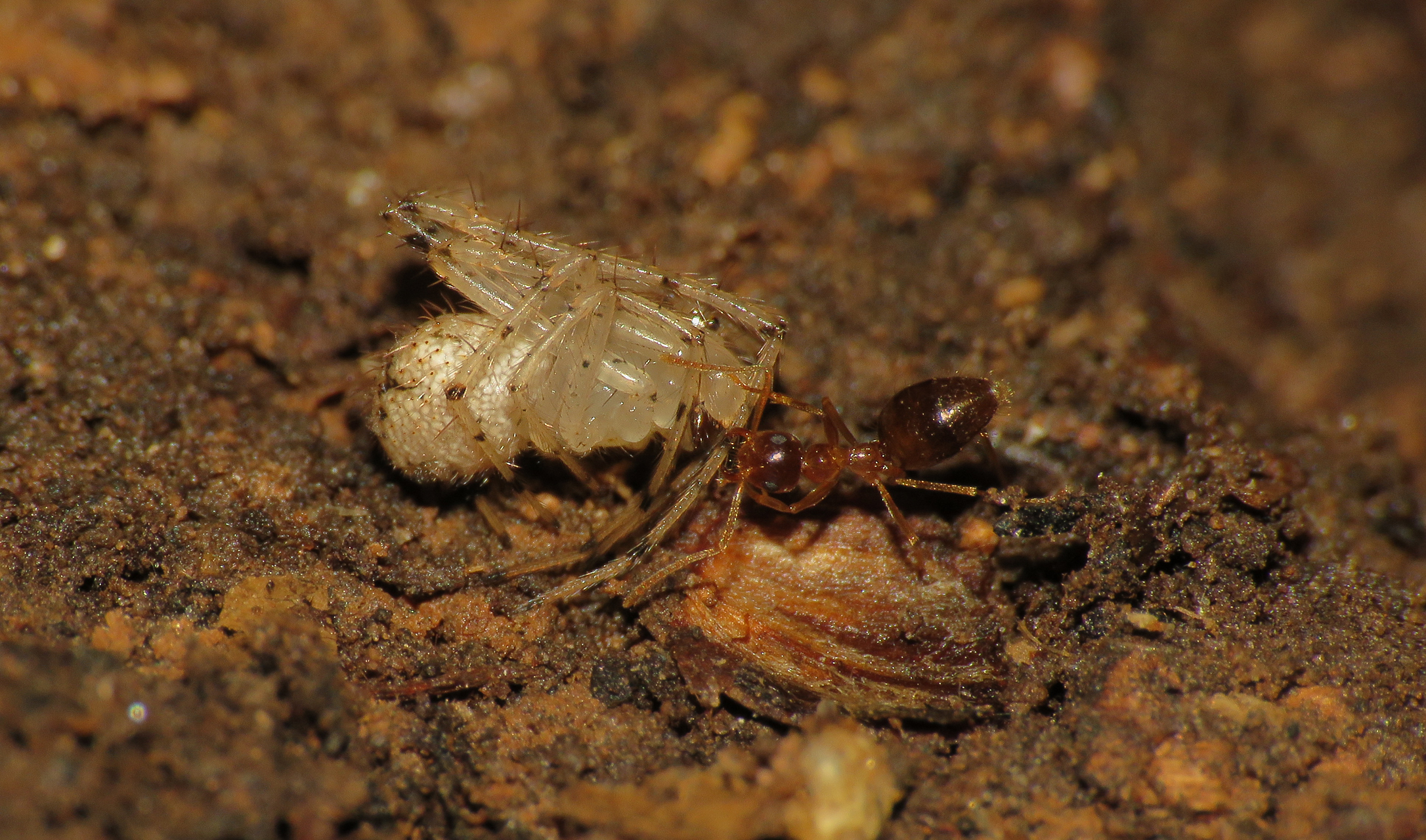 ... just a moment before I gave up, the ant passed by, found the seemingly dead spider and bite his leg ...