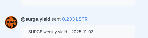 My LSTR bag keeps increasing. I bought a total of 46.019 LSTR, and now it's 47.410 through lstr.voter rewards and surge.yield, on the road to 50 LSTR.