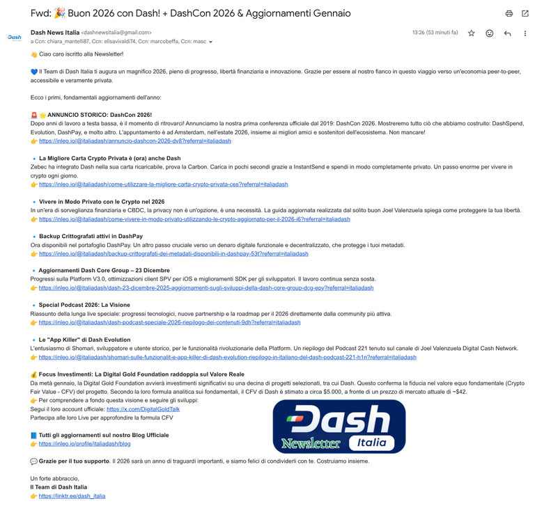 📩@dashpay Italia's first #Newsletter of 2026 has been released🥂
