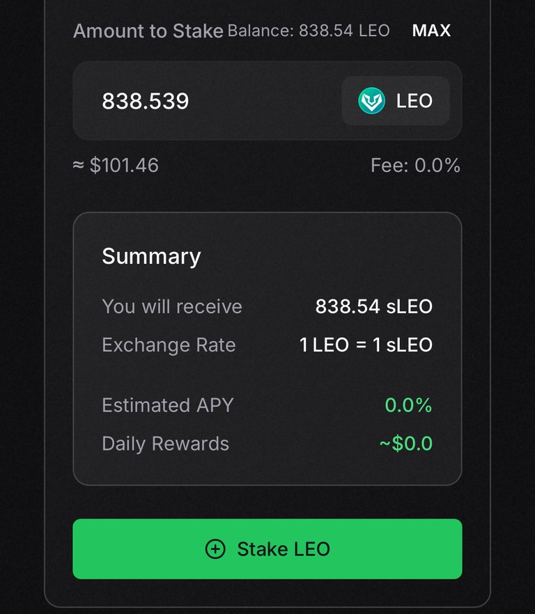 First, I went to Coinbase and bought about $115 of USDC (Arbitrum) and then had it transferred to LeoDex. I then, proceeded to swap it for around 838 Native LEO. Lastly, I staked those bad boys, for a total of 37,713.47 sLEO! I’m prepared for September 23rd!