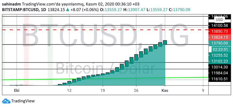 Günlük grafik için direnç: 14100$, destek ise: 11200$