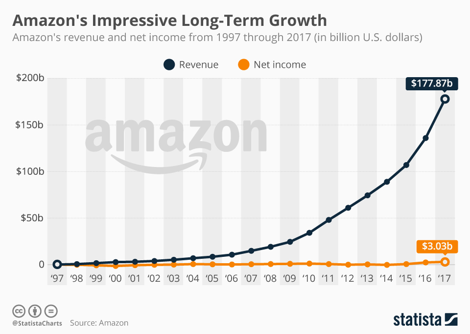 Yet, people forget that it was not always this way. Amazon was founded in the mid 1990s at the start of the Internet Age. This means the company was roughly 20 years old before it started to succeed, at least according to Wall Street's metrics.