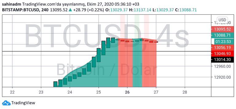 Yukarıda 13363$ aşağıda 12772$ seviyelerinin beklediğini belirtmemde fayda var. Çok riskli bir noktada duruyor. Ayrıca13000$ güçlü destek olarak görevini gayet güzel yaparken 13363$ güçlü bir direnç değil, şimdilik.