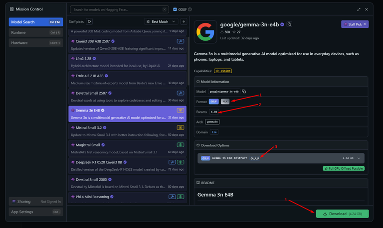 - Parameters: Make sure your device can handle the specified parameters. (if you're not sure, just download and try loading the model,this way you can downgrade or upgrade the parameters as needed)