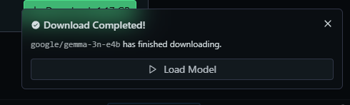 Once the model has been downloaded successfully to your device, you will receive a similar notification:
